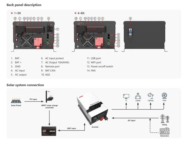 EP3000PLUS verzió. Maximum 6000W, 48V-ról működik, falra szerelhető.