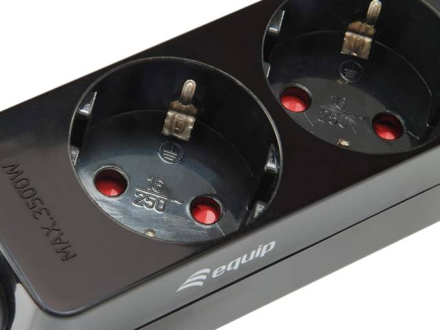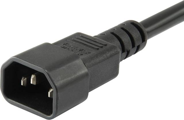 UPS-ek hátuljába dugható (C14-es csatlakozós) 3-as fekete Equip elosztó. 1,1m vezetékkel, max. 2200W terhelhetőséggel.