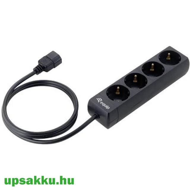 UPS-ek hátuljába dugható (C14-es csatlakozós) 4-es fekete Equip elosztó. 1,1m vezetékkel, max. 2200W terhelhetőséggel.
