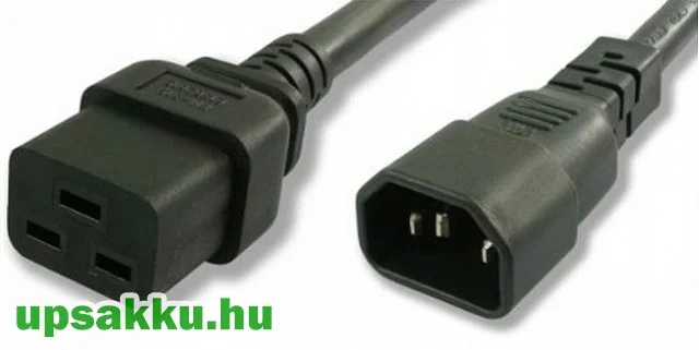 Nagy UPS összekötő kábel C19-C14 csatlakozóval. Földelt, fekete, 10A. Szerelt típus.