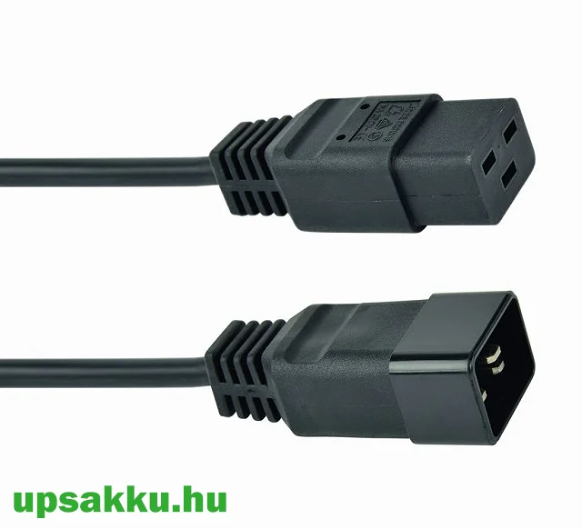 Nagy UPS összekötő kábel C19-C20 csatlakozóval. Földelt, fekete, 16A. Szerelt típus.